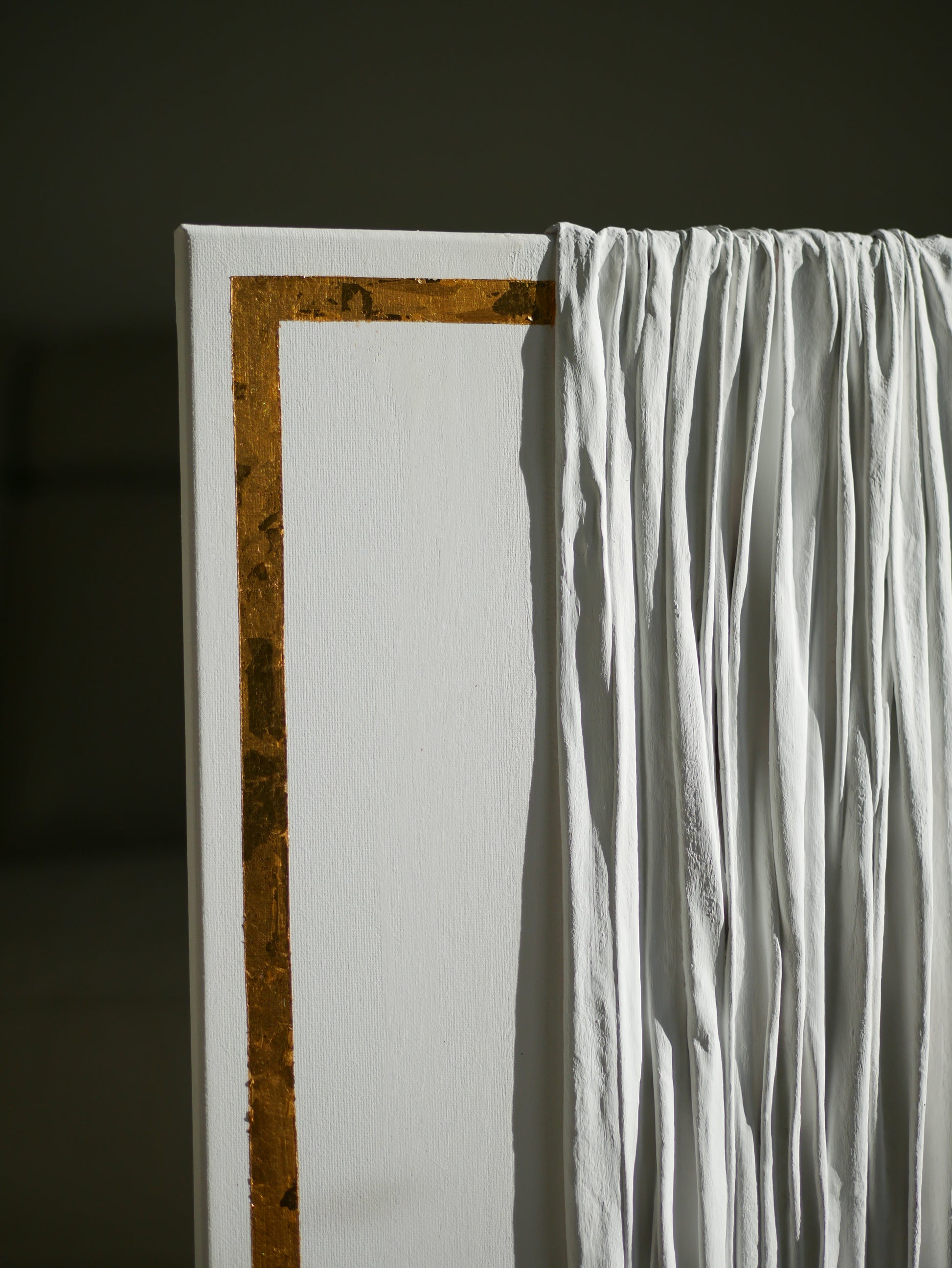 Une œuvre qui sublime l'art texturé avec une approche innovante. Ce tableau, bien qu'utilisant la pâte texturée comme ingrédient, se concentre sur la fluidité et la légèreté des drapés.